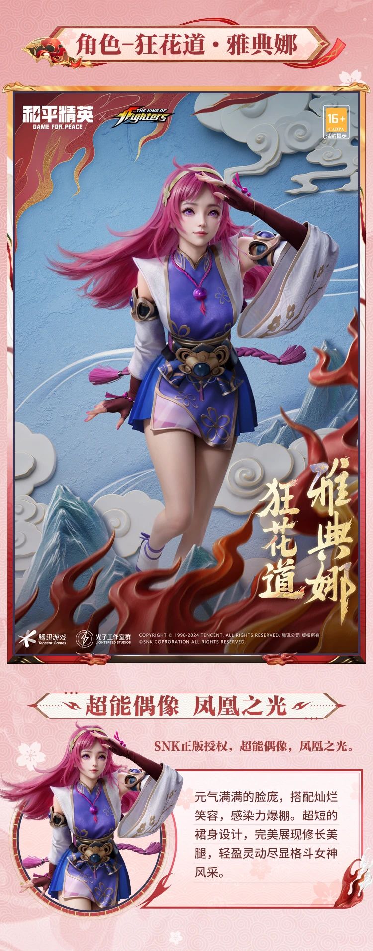SNK正版授权三大经典角色即将登陆海岛:角色—狂花道·不知火舞角色—狂花道·娜可露露角色—狂花道·雅典娜