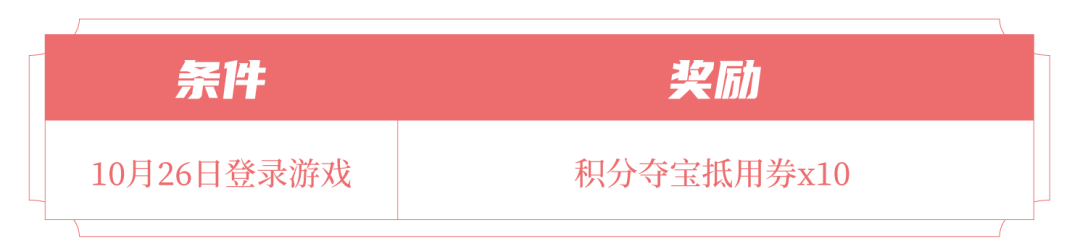 小王生日礼到!10月26日当天登录游戏即可领取积分夺宝抵用券x10。