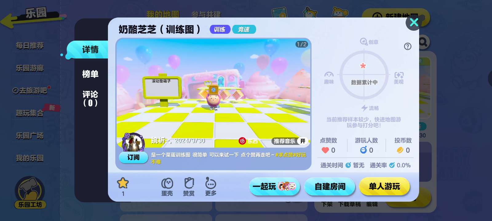 谁能来玩我的地图啊 地图名 奶酪芝芝(训练图)刚发布的哦