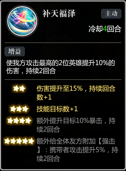 补天石不仅能提升己方伤害、高星级更能提升暴击和攻击,增加输出属性很全面。
