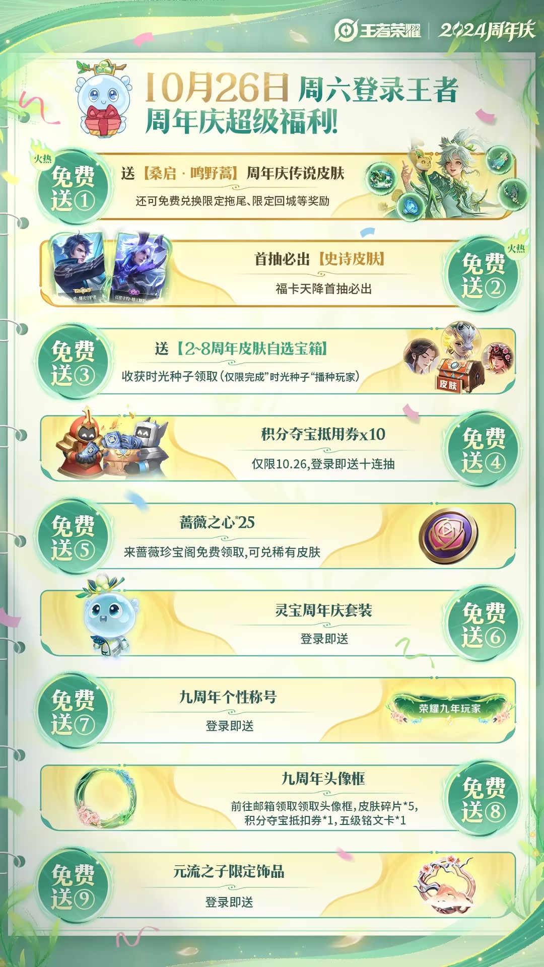 王者荣耀2024周年庆福利日,锁定10月26日,超级福利一网打尽!
