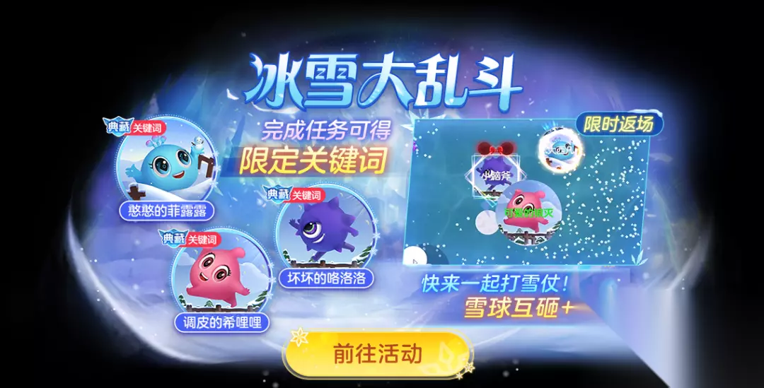 球球大作战冰雪大乱斗再度开启!快来球球里打雪仗!(内含打雪仗制胜秘籍)如下: 希小哩最爱的冬日玩法返场啦! 可以互砸雪球+闪合 快来球球大作战开一场紧张刺激的打…