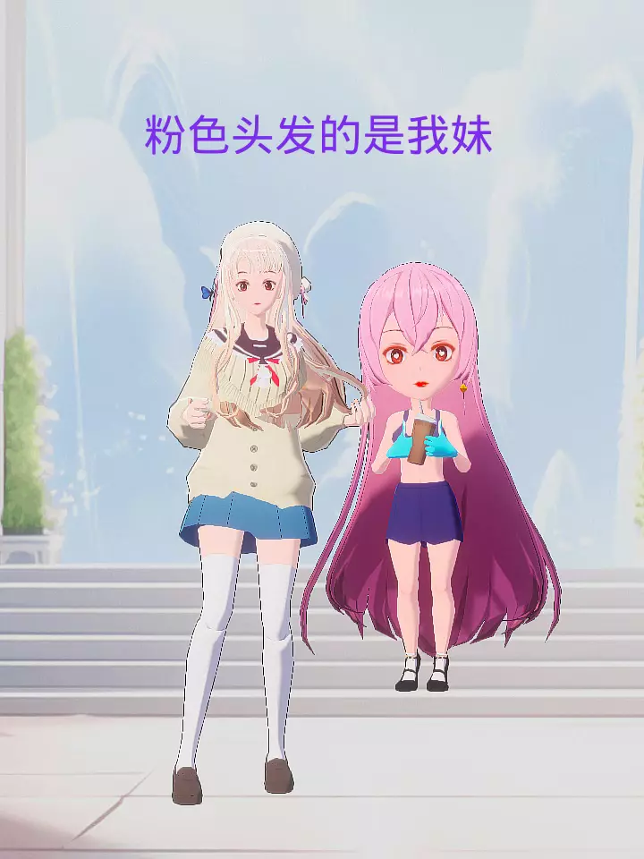 粉色头发的那个是我的妹妹。