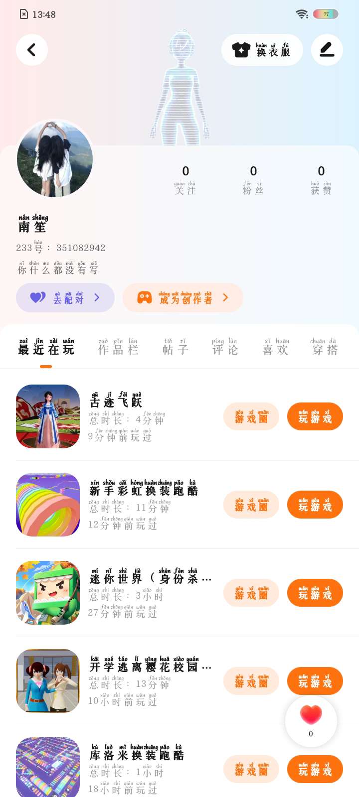 喜欢玩的游戏: