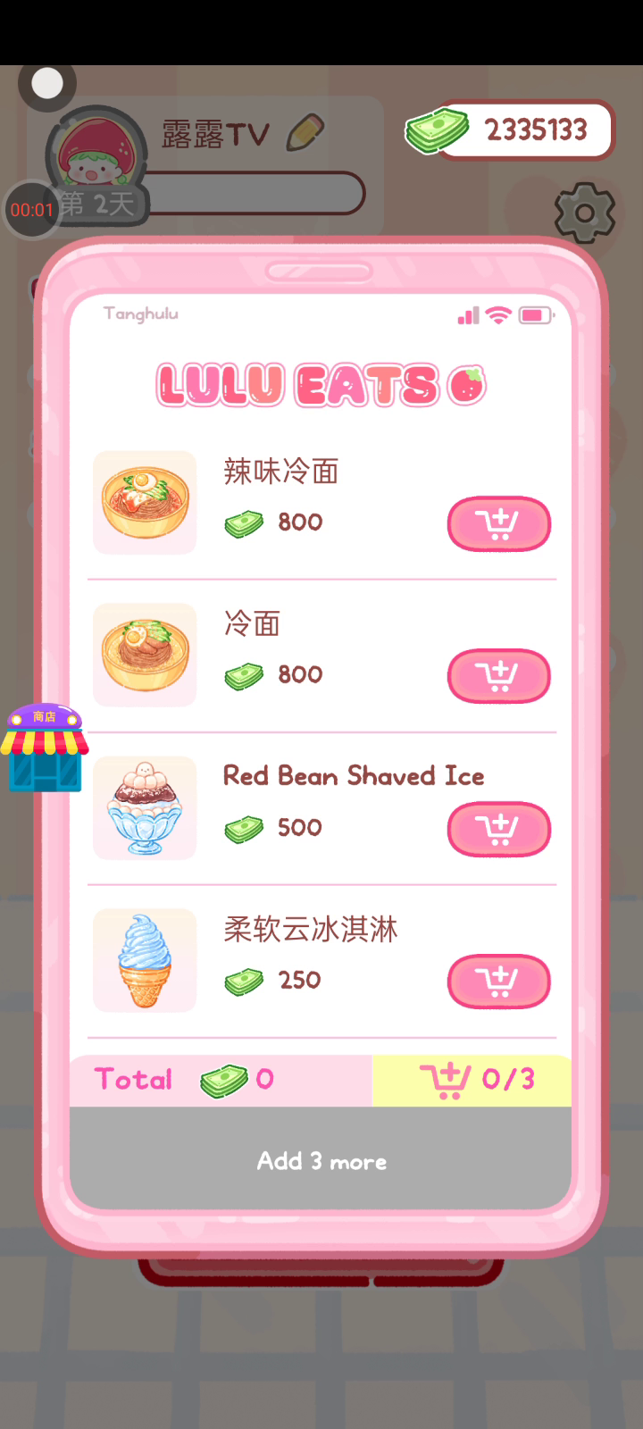 更新宠物!!! 「你进行草莓糖葫芦吃播的话,我就赞助100元。」 「脆口的声音太迷人了(°θ°)」 由于客人都被最近新开的许多糖葫芦店家抢走,曾经号称糖葫芦达人的父母因此卧病在床。 继承父母店面的主角露露开始糖葫芦吃播来宣传店面。 直到成为真正的糖葫芦达人那一天! 「今天我也要开始糖葫芦直播罗!( •o• )」 [串材料] 只有新鲜的水果的话,很难以一名吃播实况主存活下来。还要有松饼、地球软糖、青阳辣椒!利用奇特的材料制作糖葫芦吧。 [裹糖衣] 将材料串满竹签的话,就放进锅子搅动吧。唯有利用达人的秘法,才能裹出又薄又脆的糖衣。 [即时吃播] 咔哒咔哒!今天的吃播也大成功。热烈的聊天内容看起来反应也不错。看来得利用完成观众任务得到的赞助金来买新材料了! 来,准备好了吧?现在就马上挑战成为糖葫芦达人吧!