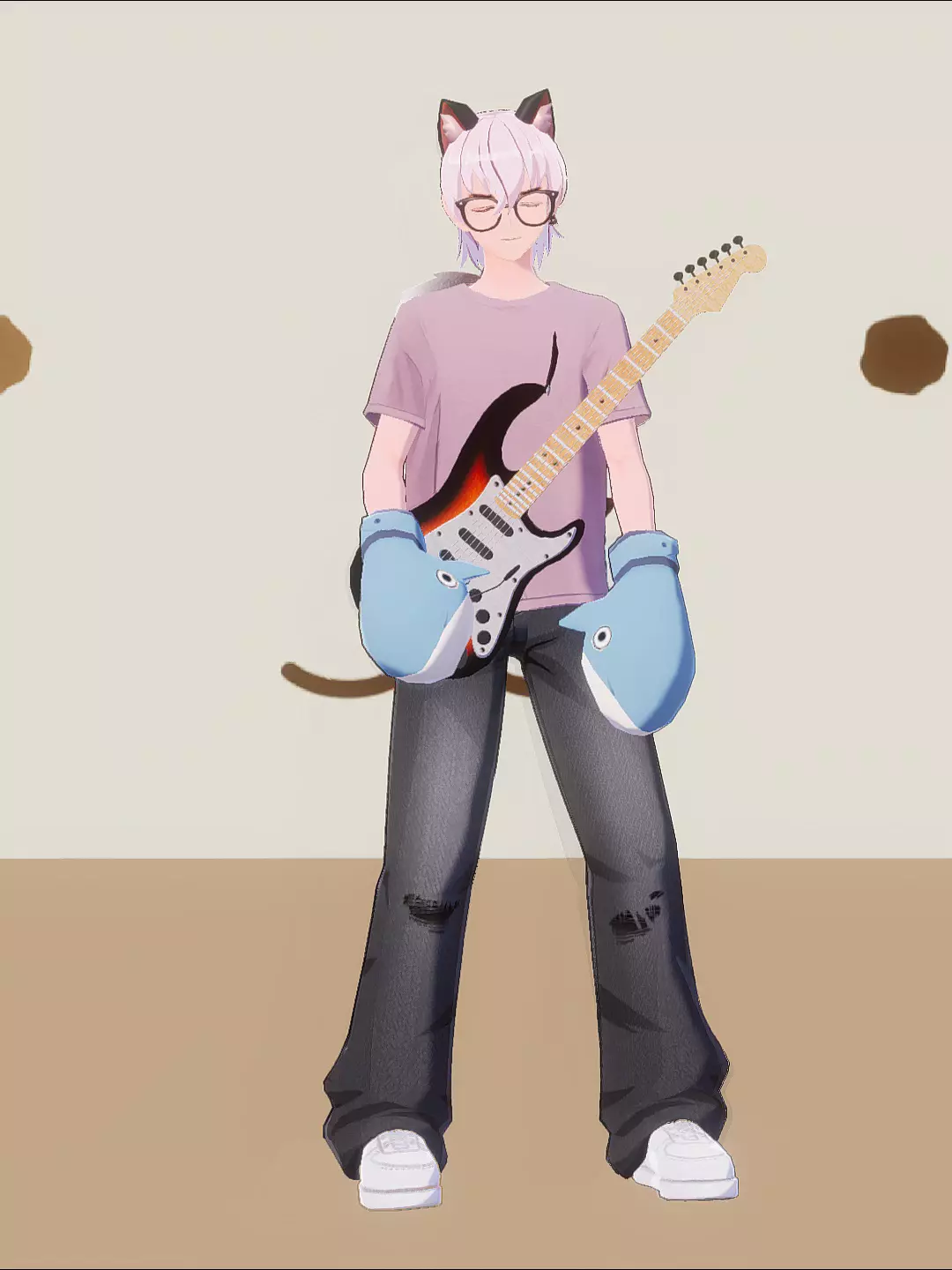 分享#233派对的虚拟形象今日份OOTD,这个虚拟形象身着带卡通图案的黑色T恤裙,搭配渐变袜套与可爱拖鞋,风格个性潮流,尽显独特穿搭魅力。