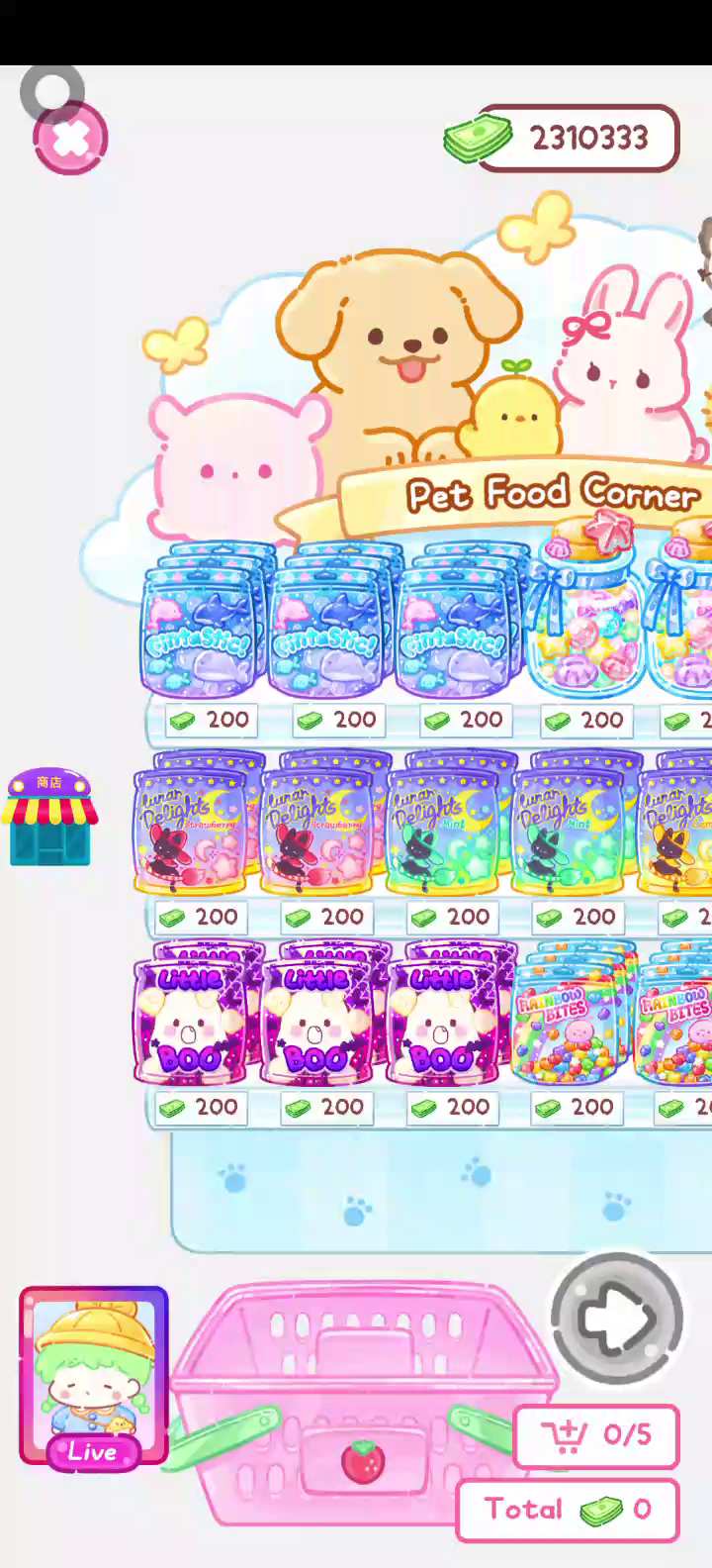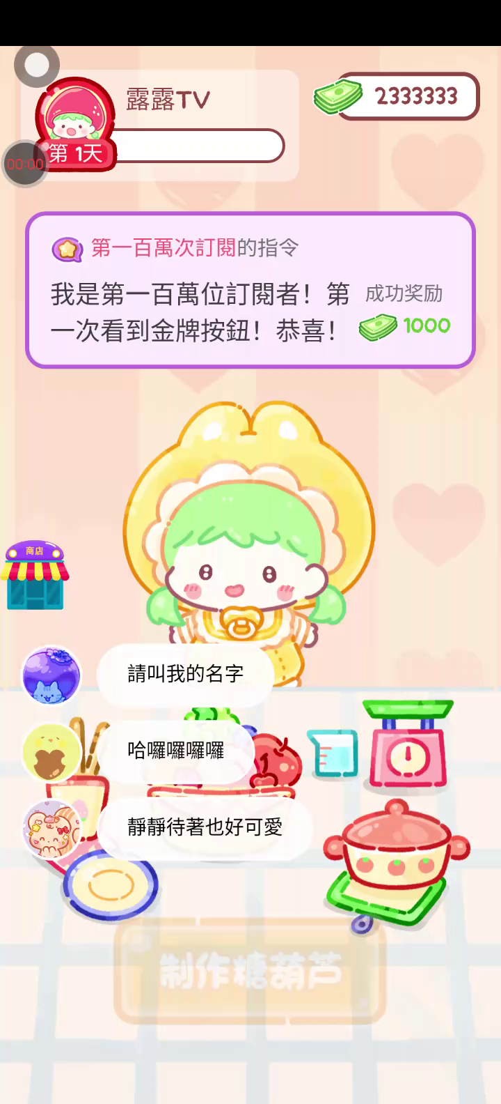 更新宠物!!! 「你进行草莓糖葫芦吃播的话,我就赞助100元。」 「脆口的声音太迷人了(°θ°)」 由于客人都被最近新开的许多糖葫芦店家抢走,曾经号称糖葫芦达人的父母因此卧病在床。 继承父母店面的主角露露开始糖葫芦吃播来宣传店面。 直到成为真正的糖葫芦达人那一天! 「今天我也要开始糖葫芦直播罗!( •o• )」 [串材料] 只有新鲜的水果的话,很难以一名吃播实况主存活下来。还要有松饼、地球软糖、青阳辣椒!利用奇特的材料制作糖葫芦吧。 [裹糖衣] 将材料串满竹签的话,就放进锅子搅动吧。唯有利用达人的秘法,才能裹出又薄又脆的糖衣。 [即时吃播] 咔哒咔哒!今天的吃播也大成功。热烈的聊天内容看起来反应也不错。看来得利用完成观众任务得到的赞助金来买新材料了! 来,准备好了吧?现在就马上挑战成为糖葫芦达人吧!
