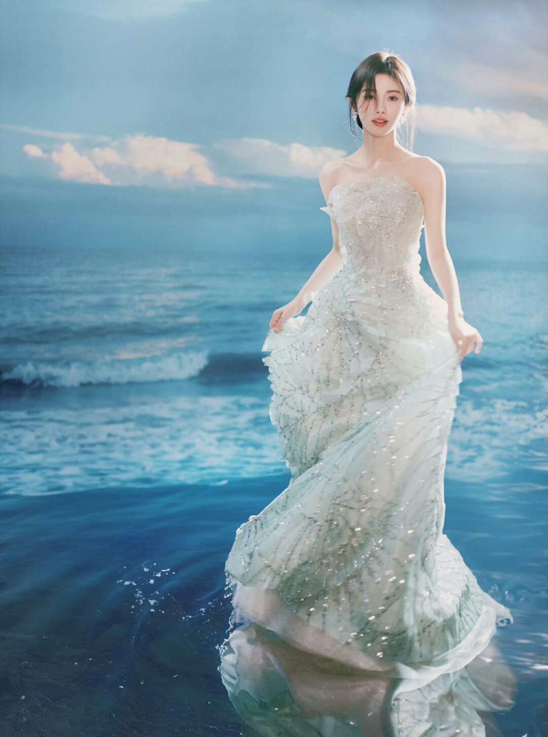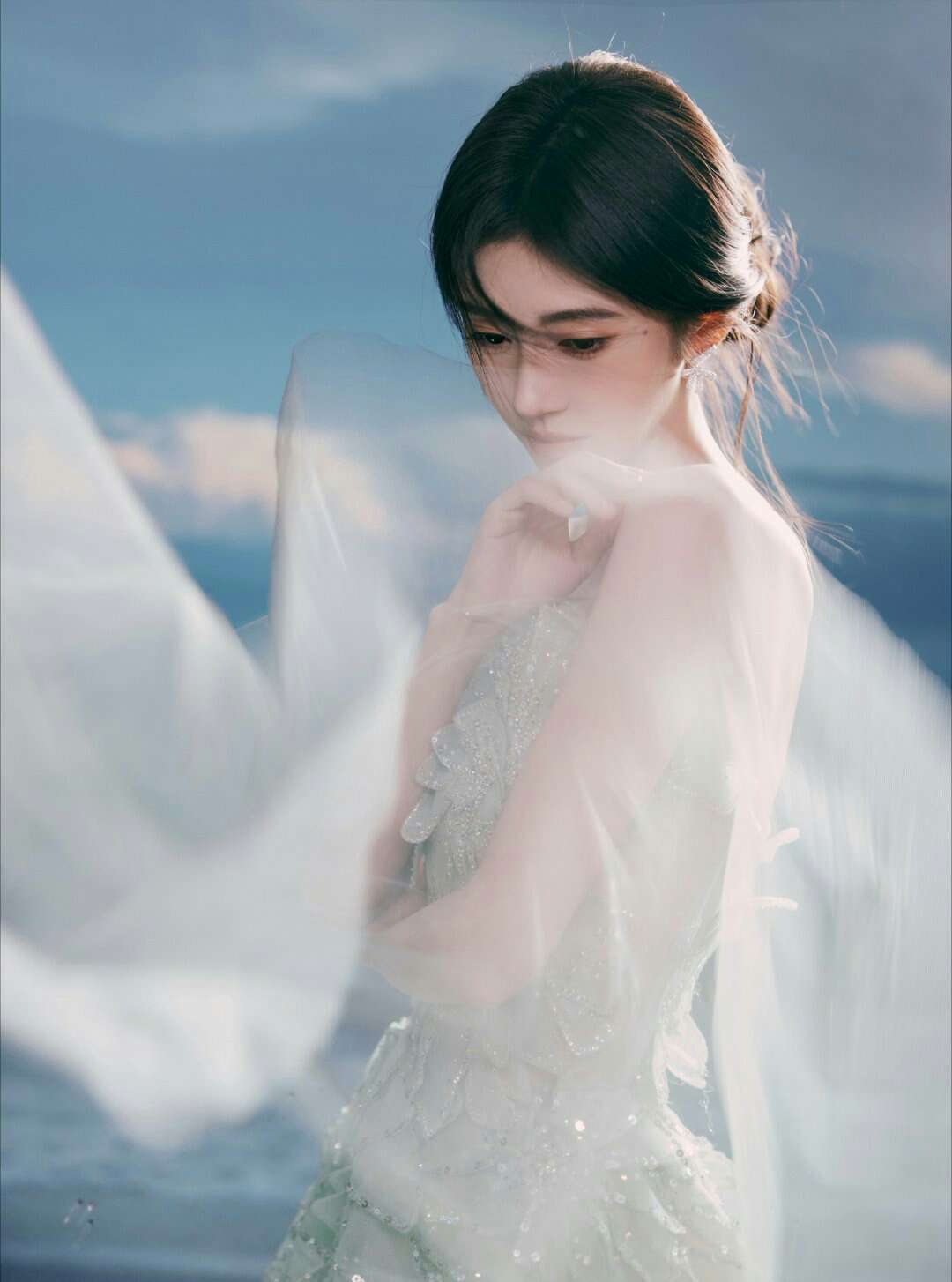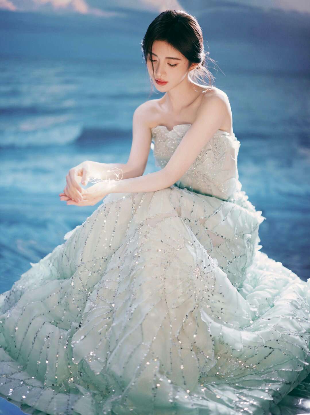 【鞠婧祎】#鞠婧祎叠羽轻扬#小鞠一袭浅绿色抹胸长裙美得好灵动~宛若镜中花、水中月✨