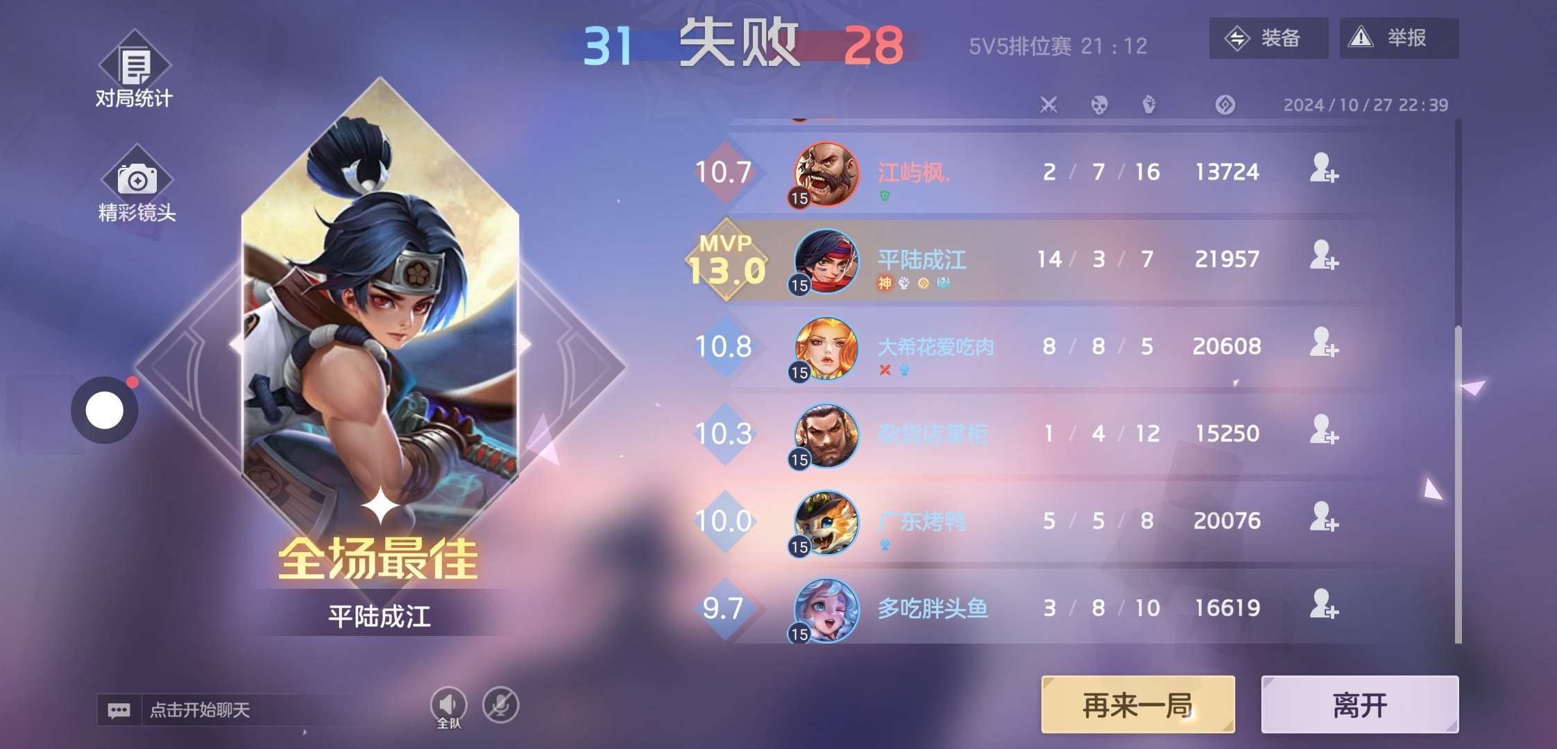 官方你告诉我我这把怎么把评分打到12分上我们开局逆风我比对面打野都是一号经济但他领先我2000