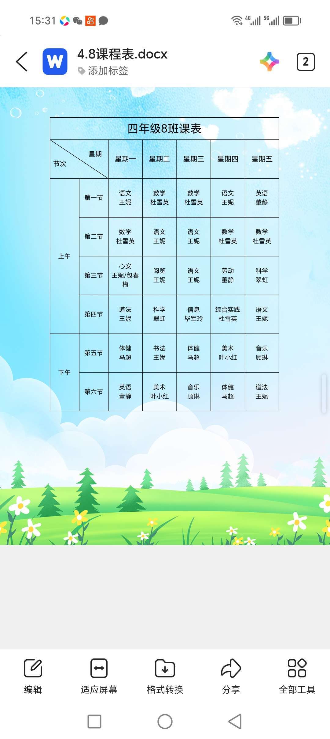 这是我们班课程表