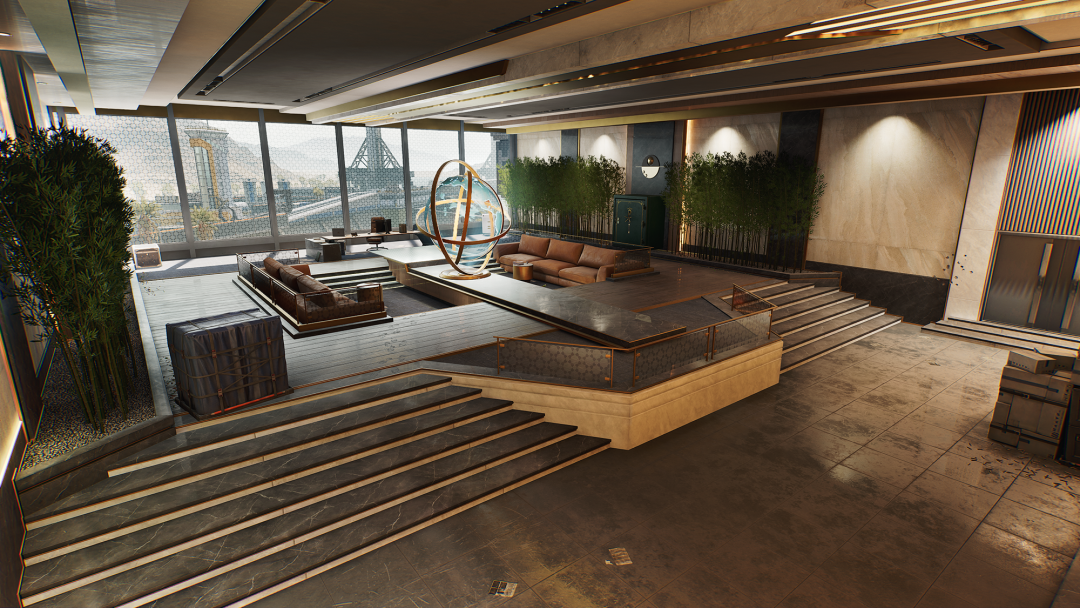 位于核心区中央四层悬空的是总裁室,只能通过浮力室或者黑室内部的竖梯或楼梯间攀爬到达。