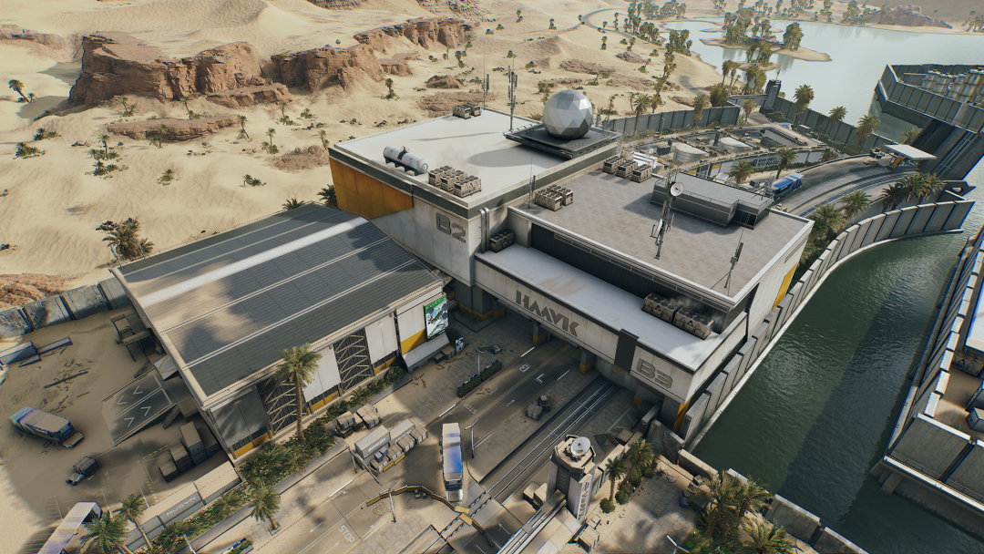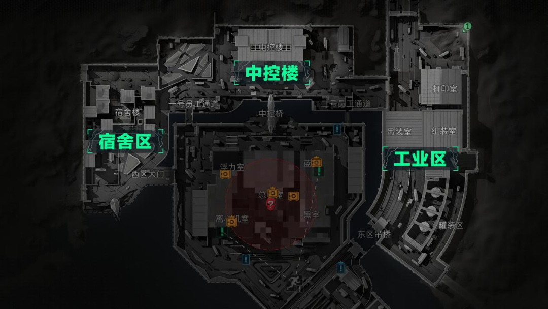 北部的中控楼,共有约27个固定物资点,在外围资源区中物资量最多。位于二楼的保险柜值得优先搜索,更重要的是这里拥有极佳的视野,进入核心区以前可以从这个位置捕获大量信息。