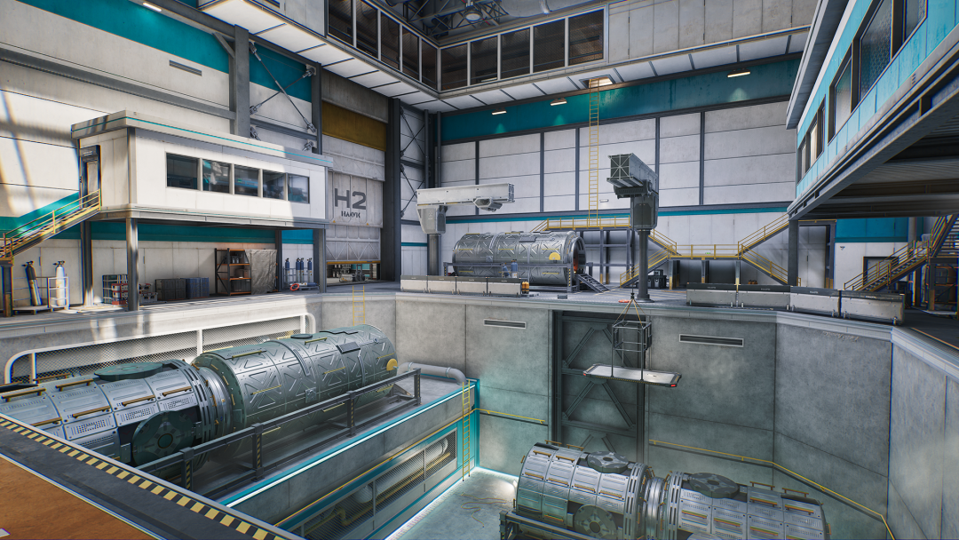 位于东北侧,标有H1字样的是蓝室,从正门进入,左侧可以进入蓝室一层和下沉平台,不管是内部的保险柜,还是其中的直升机撤离点激活处,都将会是大家争夺的重点。