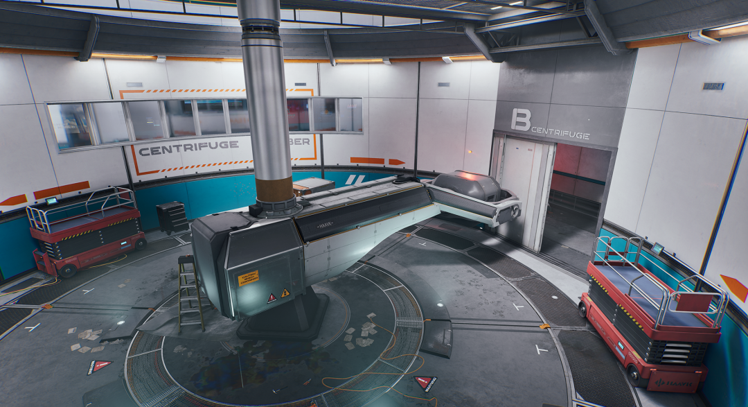 从正门进入,左手边就是离心机室内部和控制平台。正面正对的楼梯可以通往二层的诸多物资房间。
