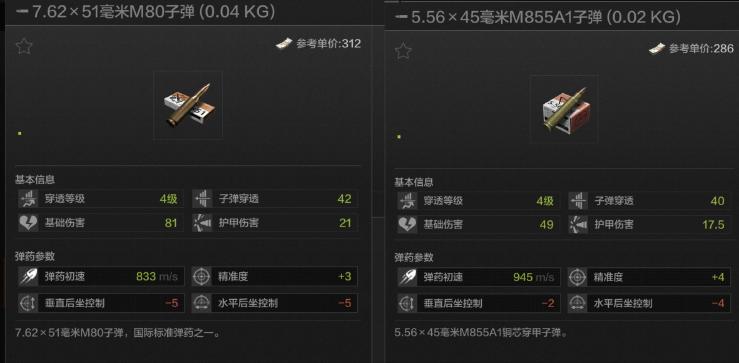 玩家可以在游戏中查看子弹的属性,以及它附带的大部分加成,如果要相对应的举例子的话,那么我选择讲(A1与M80),(SP6与7N9)这两组子弹进行对比