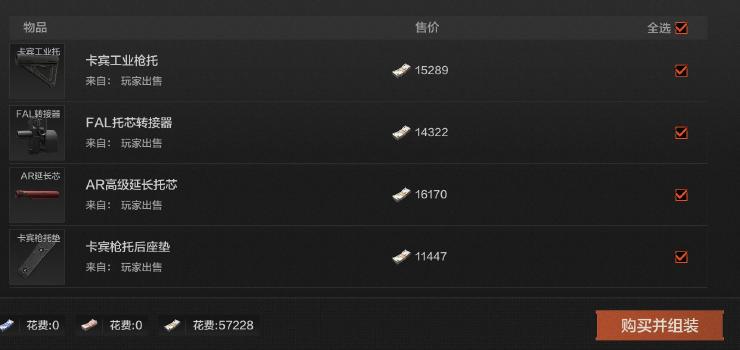 1.2在AR系列的后托中有两个托比较出名,(卡宾轻型枪托)(卡宾工业枪托)至于在游戏中出名到什么情况?fal这把枪本来应该是装fal的枪托,但是因为穿上转接器后可以搭配卡宾拖,因此fal的转接器从7000被炒到16000()