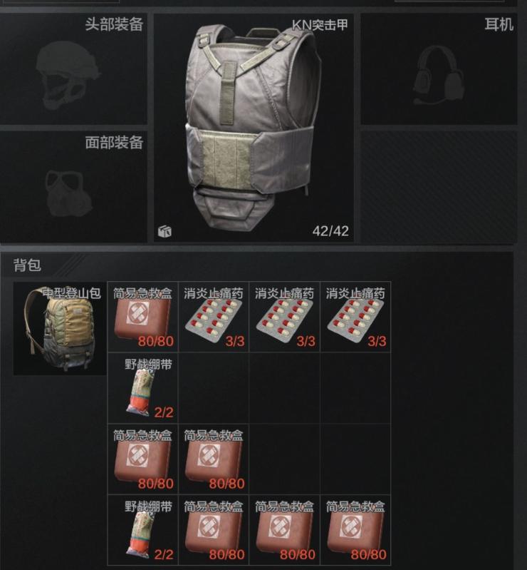 半耐三甲,登山包,一些垃圾药,总投入不超过7000柯恩币,但是对局中能极大程度减少玩家不小的压力,玩家处于萌新期探图以及适应游戏节奏的时候会舒服很多