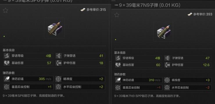 最后再来讲一下关于“SP6与7N9”,他们都是“VSS”这把枪的四级弹,但SP6的穿透与A1相同“41”,但是7N9的穿透却在“47”,已经妥妥属于“伪五级弹”的行列了,关键又是什么?这两种子弹的价格相差竟然不大!