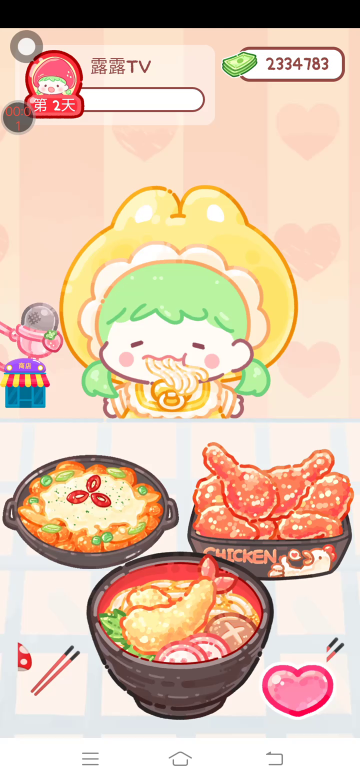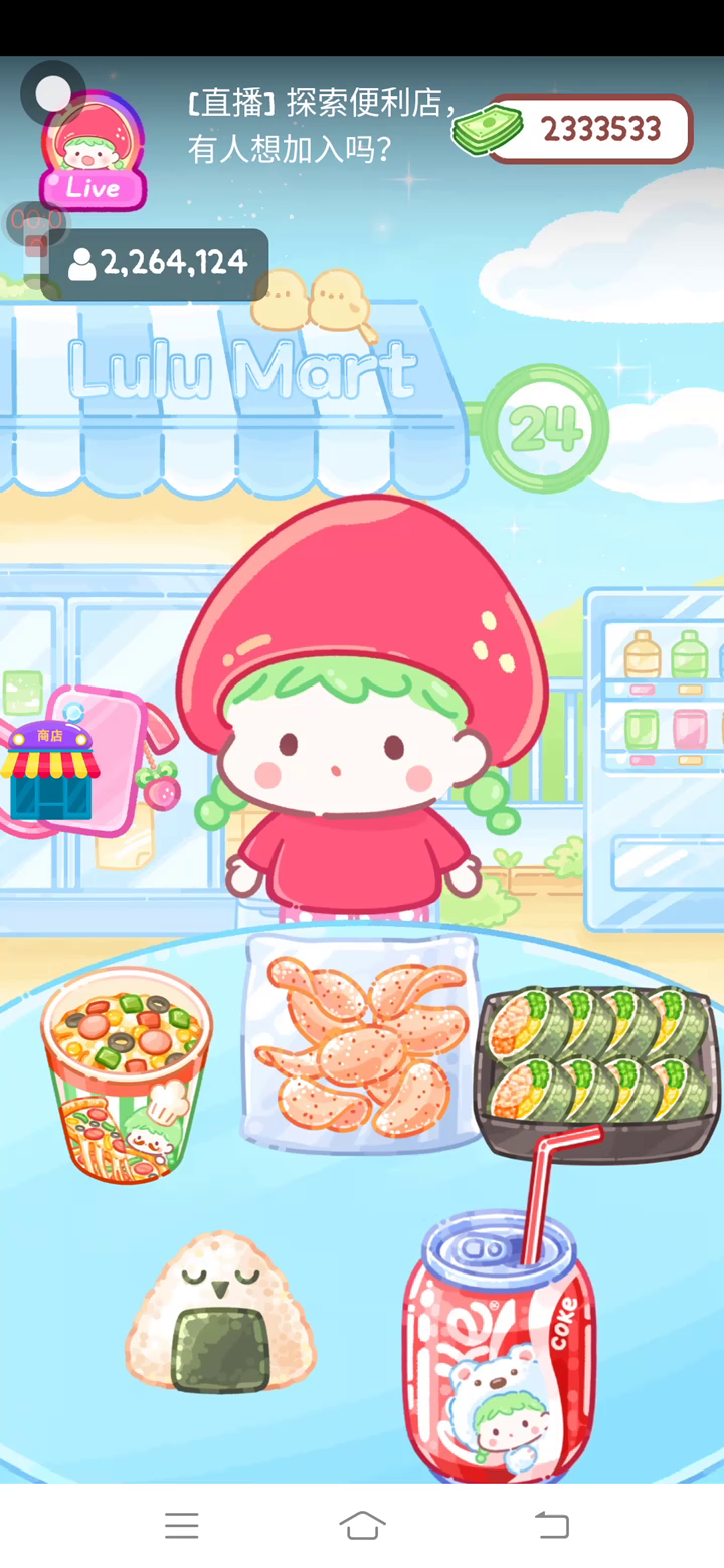 更新宠物!!! 「你进行草莓糖葫芦吃播的话,我就赞助100元。」 「脆口的声音太迷人了(°θ°)」 由于客人都被最近新开的许多糖葫芦店家抢走,曾经号称糖葫芦达人的父母因此卧病在床。 继承父母店面的主角露露开始糖葫芦吃播来宣传店面。 直到成为真正的糖葫芦达人那一天! 「今天我也要开始糖葫芦直播罗!( •o• )」 [串材料] 只有新鲜的水果的话,很难以一名吃播实况主存活下来。还要有松饼、地球软糖、青阳辣椒!利用奇特的材料制作糖葫芦吧。 [裹糖衣] 将材料串满竹签的话,就放进锅子搅动吧。唯有利用达人的秘法,才能裹出又薄又脆的糖衣。 [即时吃播] 咔哒咔哒!今天的吃播也大成功。热烈的聊天内容看起来反应也不错。看来得利用完成观众任务得到的赞助金来买新材料了! 来,准备好了吧?现在就马上挑战成为糖葫芦达人吧!