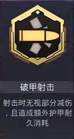 2.破甲射击:这个就比较适合前期没有拿下节奏的小伙伴们。我们可以选择这个插件提升对敌方的护甲穿透。这个插件可以算是一个小淘汰王,在你没有高淘汰的情况下。这个插件是不二的选择。但是这个弊端就是仅仅破甲,如果小伙伴们打四肢破甲射击就没有用了。所以也比较考验小伙伴们的枪法哦。