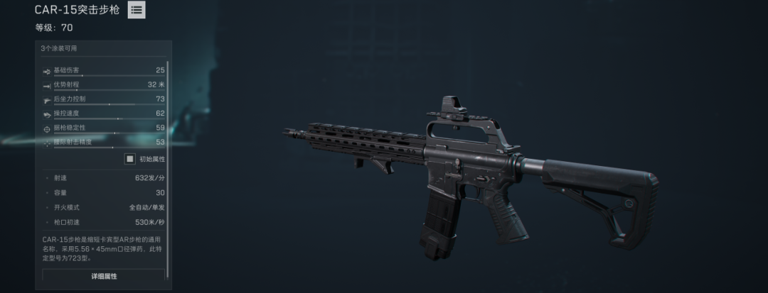 威龙老师推荐使用CAR-15突击步枪,初始就能使用。不仅属性均衡,中近距离都能打,而且所有兵种都能装备。