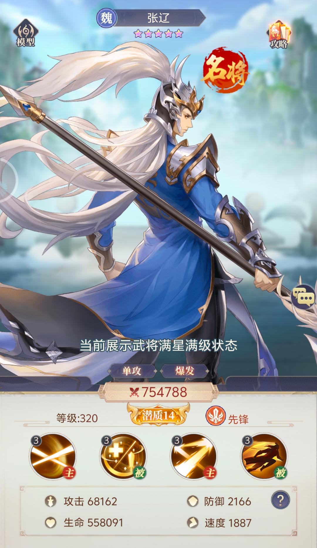 张辽三技能瞬影斩若击杀目标,将再次释放100%伤害值的技能【虎袭·瞬杀】。