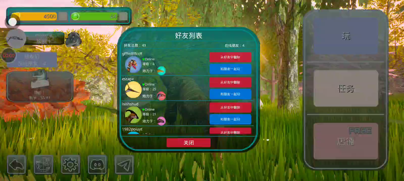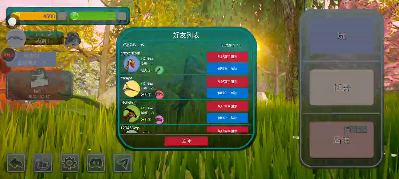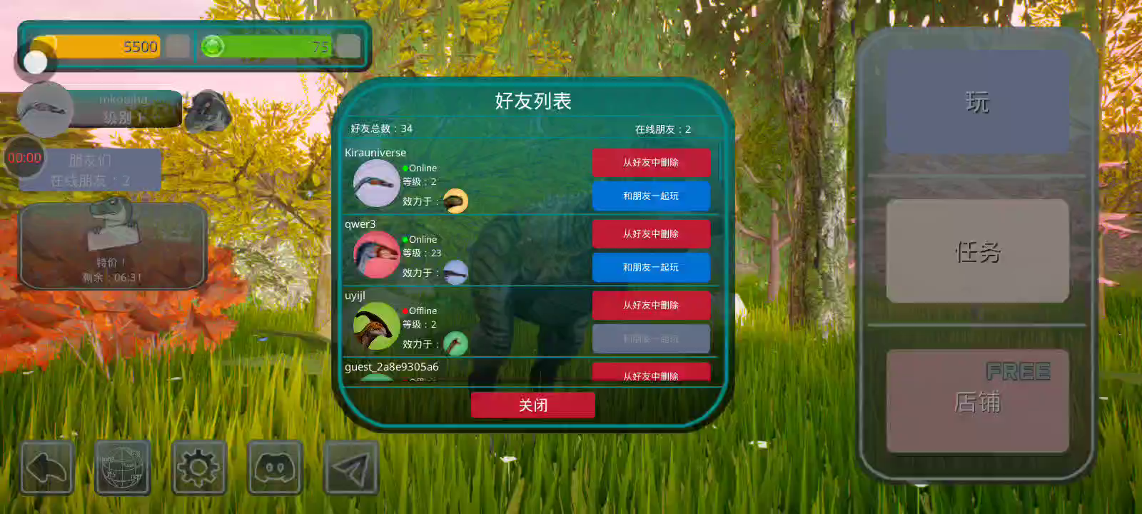 【更新:修复错误,提高稳定性】 恐龙岛是一款以侏罗纪世界为背景的逼真在线恐龙模拟器。 享受各种恐龙、逼真的图形和岛屿大地图。 选择你的恐龙并开始生存。 与您的朋友以及世界各地的玩家一起玩。 游戏中呈现了所有流行的恐龙,例如,从霸王龙、棘龙等食肉动物开始,到三角龙、甲龙等食草动物,游戏中有超过 23 种恐龙,包括飞行和游泳物种,以及所有恐龙。他们中的一些人在逼真的恐龙模拟器游戏中等待着您。