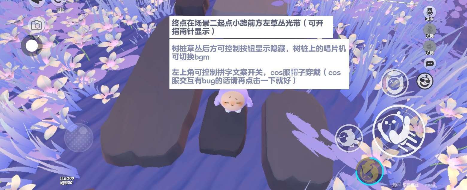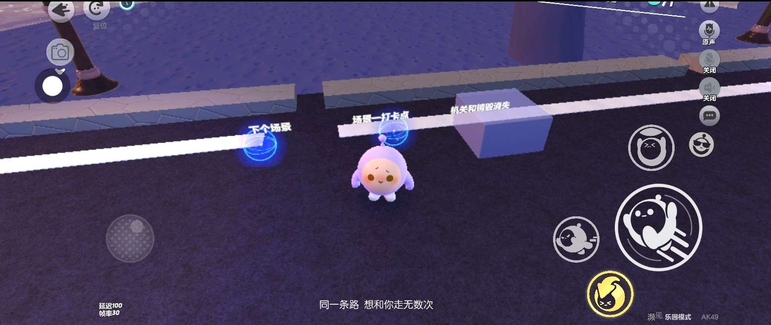 开头这里有一段段小跑酷,非常简单的小跑酷🌷新手也可以轻轻松松过关的,还有地上落下的紫色树片,那么这个地图一定是关于紫色的