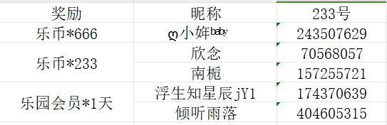 随机抽取3位送出:乐币*233
