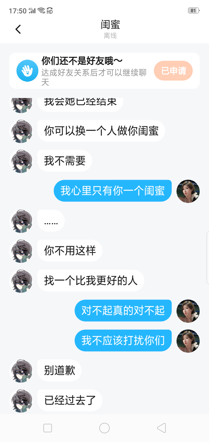 以前的闺蜜你不是不是说不恨我吗?,为什么还要....,反正我不恨你。,因为我心里只有你一个人....