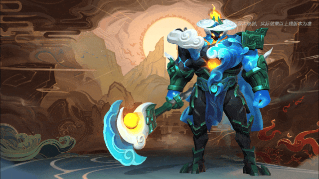 祥云落右肩,海浪挂身后。凝神聚气,蓝绿色渐变法杖在火光中出世,尽显磅礴大气。