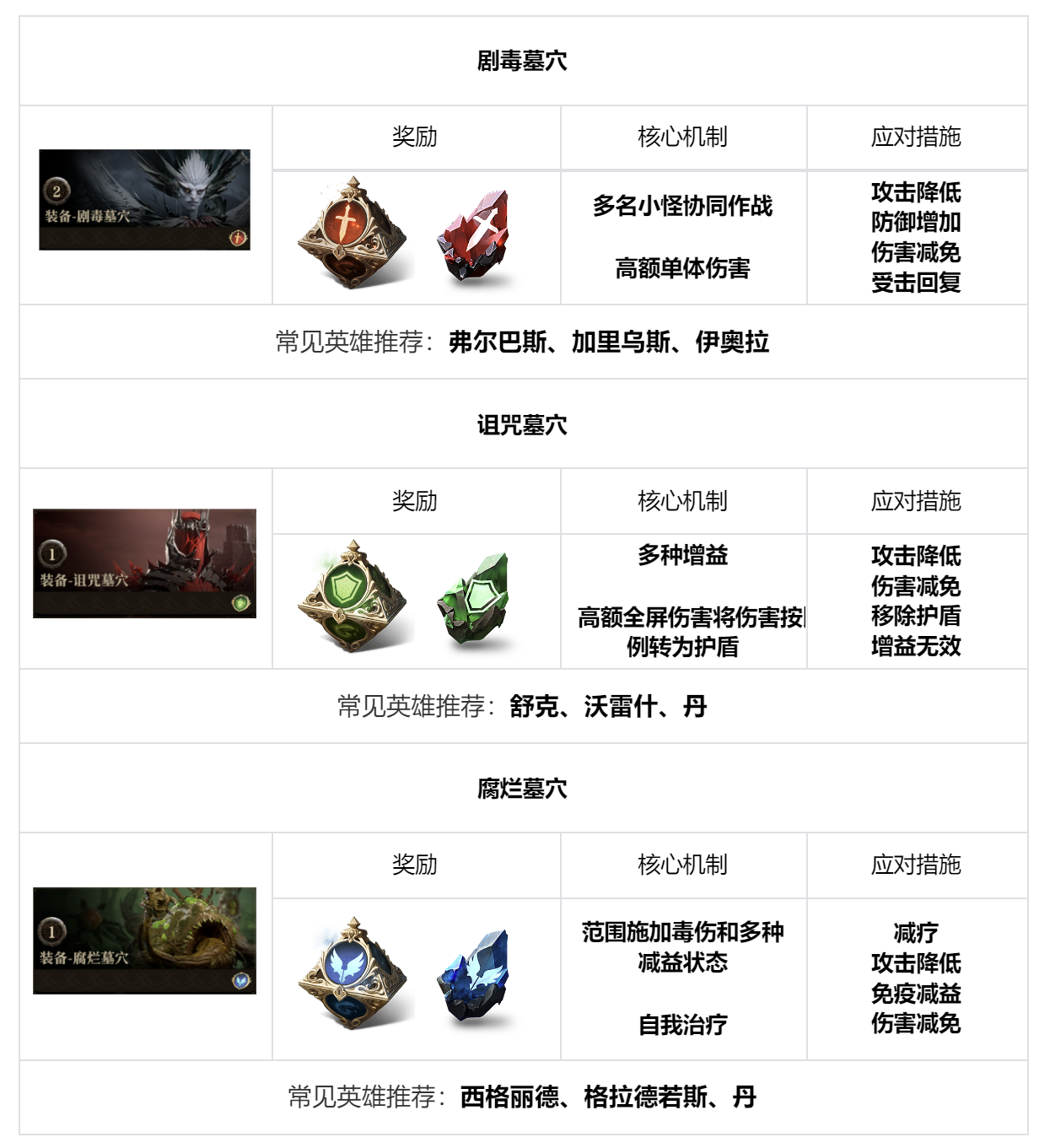 头盔、衣服、武器、手套及此类装备锻造材料均在以下三大墓穴中产出。