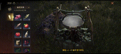 点击篝火上的锅炉并投入2~4个食材