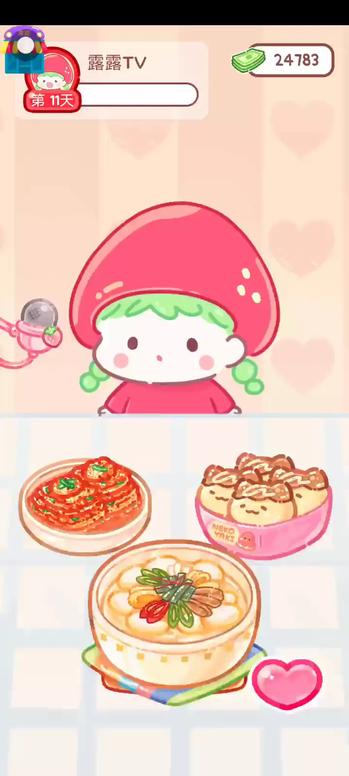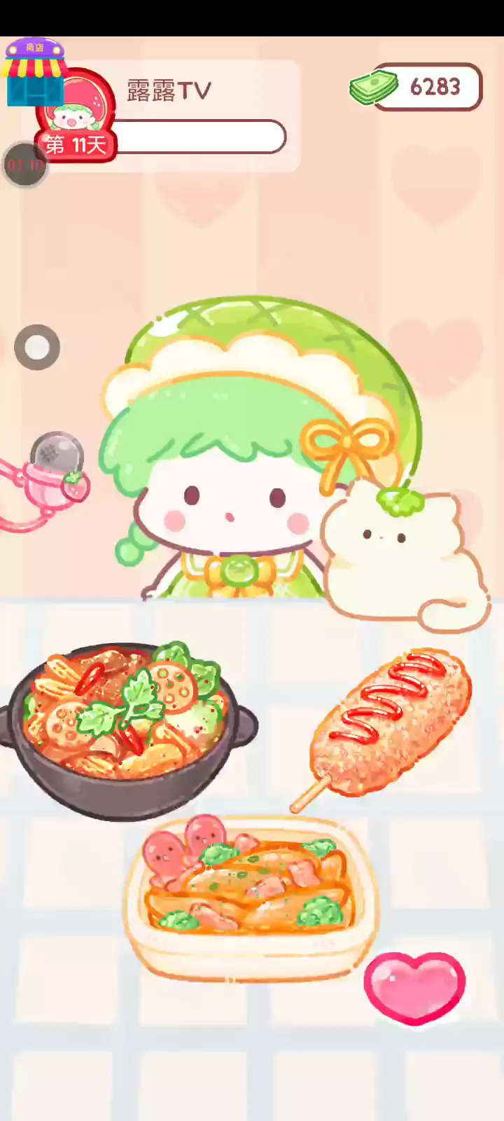 更新宠物!!! 「你进行草莓糖葫芦吃播的话,我就赞助100元。」 「脆口的声音太迷人了(°θ°)」 由于客人都被最近新开的许多糖葫芦店家抢走,曾经号称糖葫芦达人的父母因此卧病在床。 继承父母店面的主角露露开始糖葫芦吃播来宣传店面。 直到成为真正的糖葫芦达人那一天! 「今天我也要开始糖葫芦直播罗!( •o• )」 [串材料] 只有新鲜的水果的话,很难以一名吃播实况主存活下来。还要有松饼、地球软糖、青阳辣椒!利用奇特的材料制作糖葫芦吧。 [裹糖衣] 将材料串满竹签的话,就放进锅子搅动吧。唯有利用达人的秘法,才能裹出又薄又脆的糖衣。 [即时吃播] 咔哒咔哒!今天的吃播也大成功。热烈的聊天内容看起来反应也不错。看来得利用完成观众任务得到的赞助金来买新材料了! 来,准备好了吧?现在就马上挑战成为糖葫芦达人吧!
