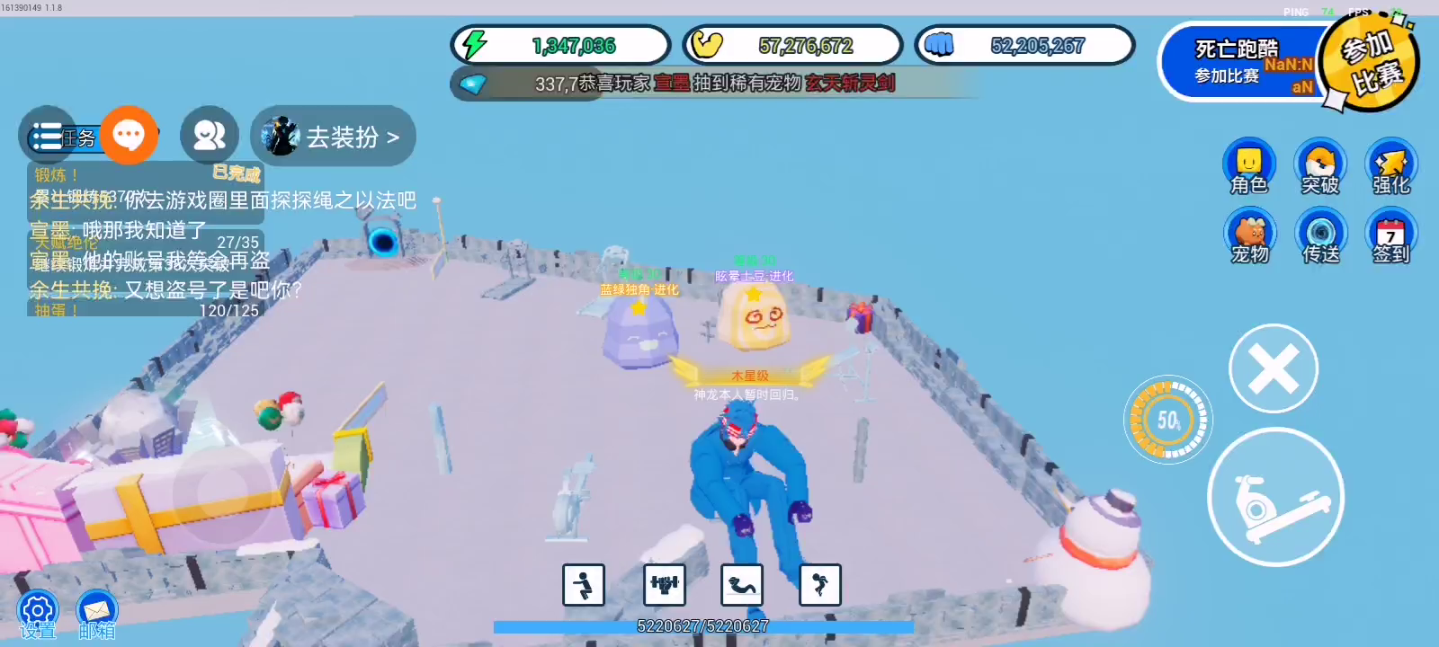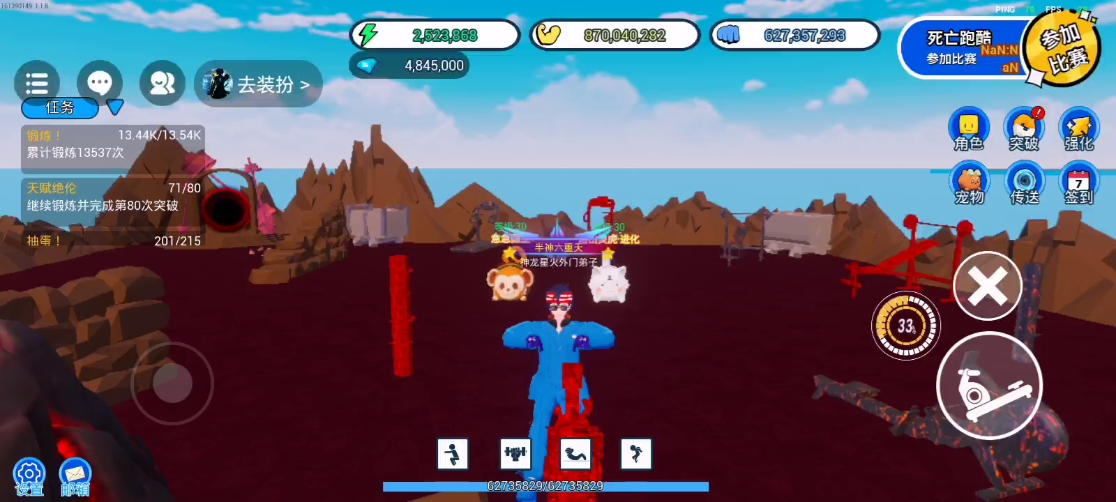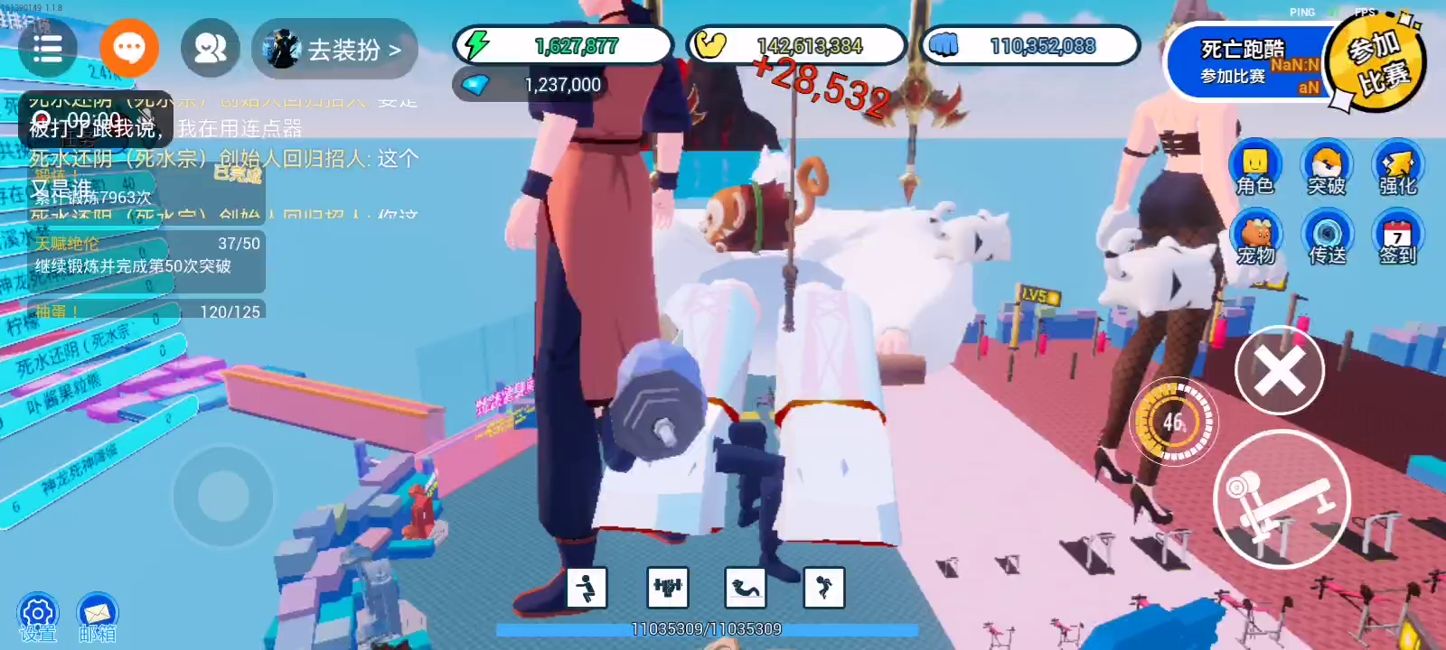 超上头联机游戏!无需下载,点击即玩! 你可以在这里健身变强,成为百米巨人! 也通过不断健身,不断战斗获得属于你的宠物! 和你的朋友一起组队战斗,成为世界传说吧~