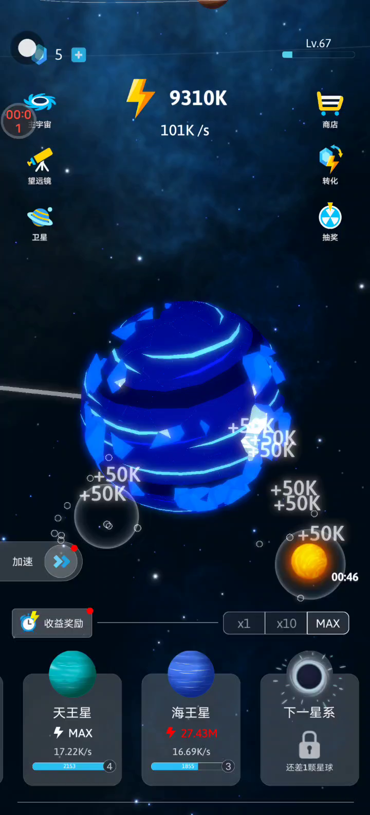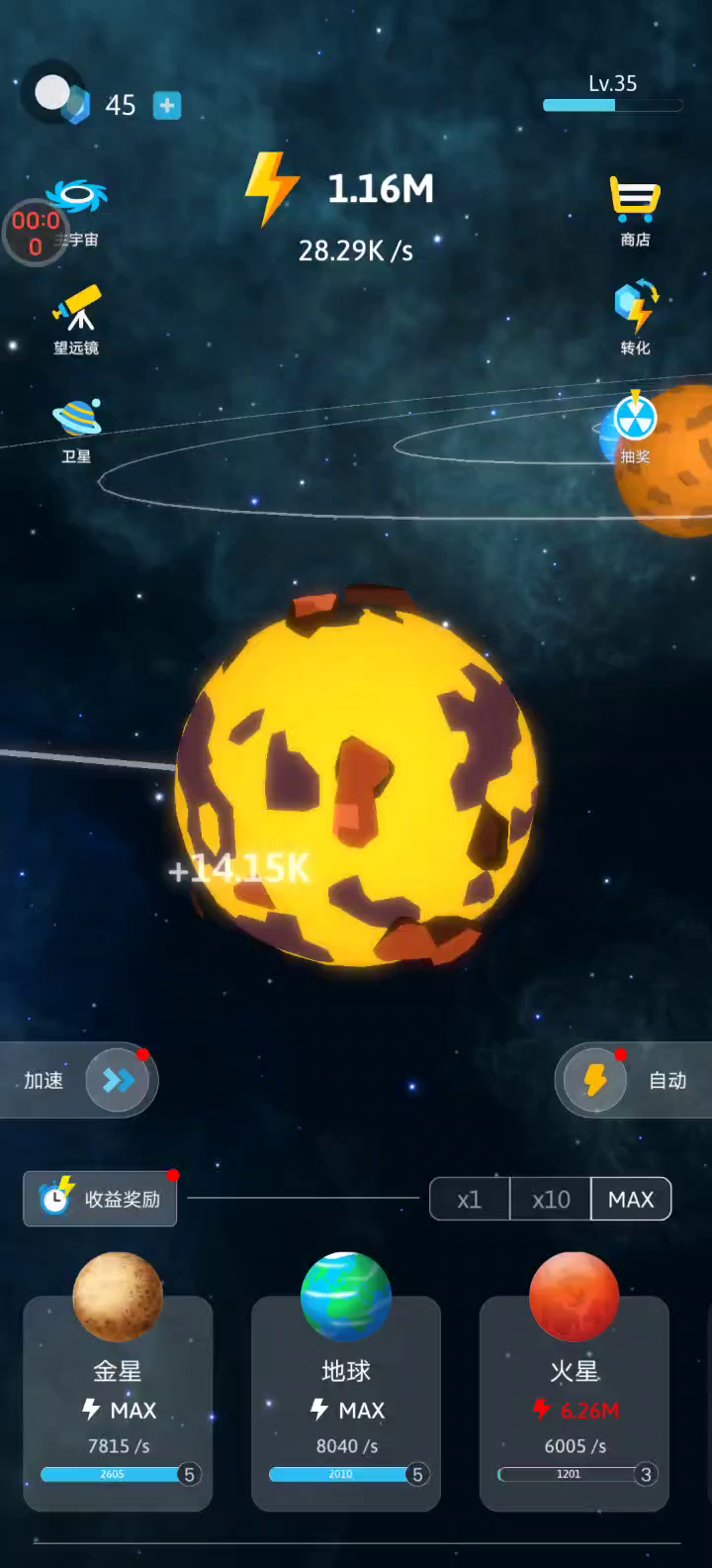 在空闲星系中踏上天体奥德赛 - 你的宇宙等待着你!? 《空闲星系》是一款终极休闲闲置游戏,可让您建立和塑造自己的宇宙,潜入宇宙并释放您内在的星系造物主! ? 特点: 从大爆炸开始:通过创世探索自己的方式,见证您独特宇宙的诞生。 制作整个太阳系:从太阳到冥王星,设计和塑造太阳系中的每个天体,并将其扩展到宇宙的远处。 解锁宇宙知识:沉浸在太阳系和宇宙的奥秘中,深入了解天体奇观和神秘的黑洞。 休闲轻松的游戏玩法:空闲银河系非常适合闲置游戏爱好者和游戏新手,为每个人提供用户友好的体验。 创造 50 多个行星:利用近 50 个行星释放您的创造力,每个行星都有独特的外观和特征。 令人惊叹的动画和 3D 图形:惊叹于令人惊叹的视觉效果,您的宇宙以惊人的动画和迷人的 3D 图形栩栩如生。 离线游戏:没有网络连接?没问题!随时随地离线玩空闲星系。 口袋大小的宇宙:随着您从谦卑的行星创造者到星系大师的进步,将整个宇宙装在口袋里。 准备好成为你的宇宙梦想的建筑师了吗?立即下载空闲星系并塑造自己的星系