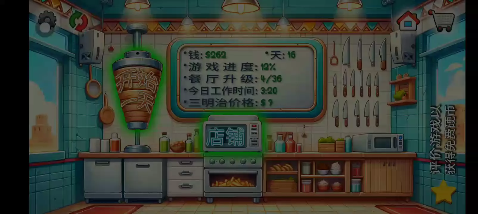 【更新日志】 1. 新的土耳其歌曲 2. 新的德国歌曲 3. 错误修复 沙威玛传奇:真正的沙威玛体验! 你是否曾经想过经营自己的沙威玛餐厅是什么样的感觉?沉浸在沙威玛传奇中,这是一款最新且最激动人心的烹饪游戏,让你进入美食世界。精确地完成顾客的订单,让你的餐厅繁荣发展。 升级你餐厅的各个方面,从最新鲜的食材和最美味的沙威玛食谱到装饰和先进的厨房设备。与竞争餐厅一较高下,争取成为城里最好的沙威玛大厨! 游戏特色 - 提供你的语言版本:游戏完全提供中文版本,包括语音和文字。 - 有趣的卡通动画:享受将你的沙威玛餐厅变得生动的动画。 - 令人兴奋的游戏玩法和无尽的挑战:享受令人兴奋的游戏玩法和无尽的挑战。 - 逼真的模拟:体验设计得尽可能接近真实餐厅的游戏中的沙威玛大厨的生活。 - 真实的沙威玛准备:从烤架上切下沙威玛并真实地包裹三明治。 - 全面的升级:用顶级设备和装饰提升你的厨房,加快服务速度,让顾客满意。 - 可定制的沙威玛:让顾客根据他们的喜好定制他们的沙威玛三明治。 - 多样化的顾客基础:为无数的顾客服务,每个人都有自己的沙威玛偏好。 你能登上顶峰,成为最终的沙威玛传奇吗?你的技能和奉献精神将是成功的关键。