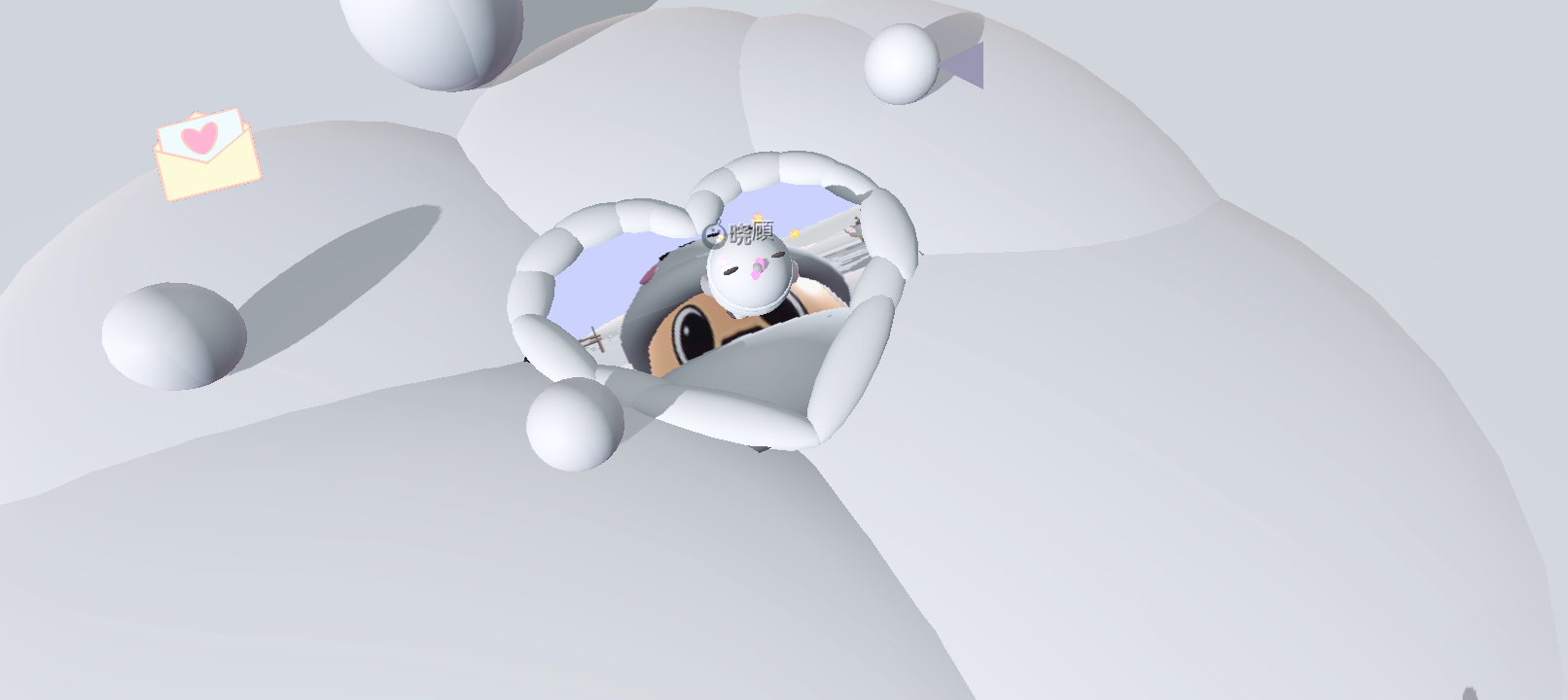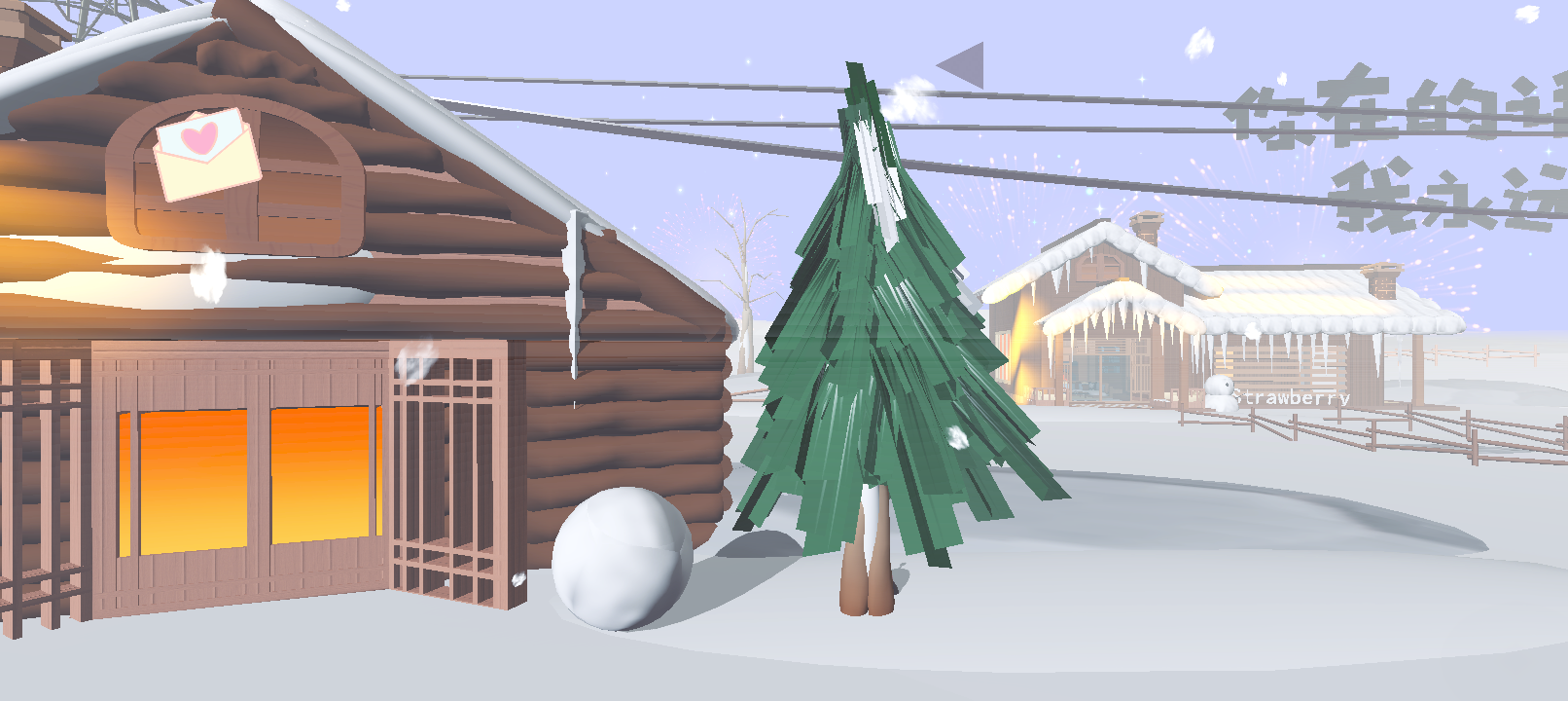 刚进入地图,可以看到蜜蜂dongdong和dongdong在迎接我们,一个手里还拿着雪球,中间的雪人❄️⛄️活灵活现,还在随风摇摆,一看就费了很多功夫,雪人做的也非常到位,有面部表情,摆动的幅度和位置都是一样的,给人一种可爱的感觉☺