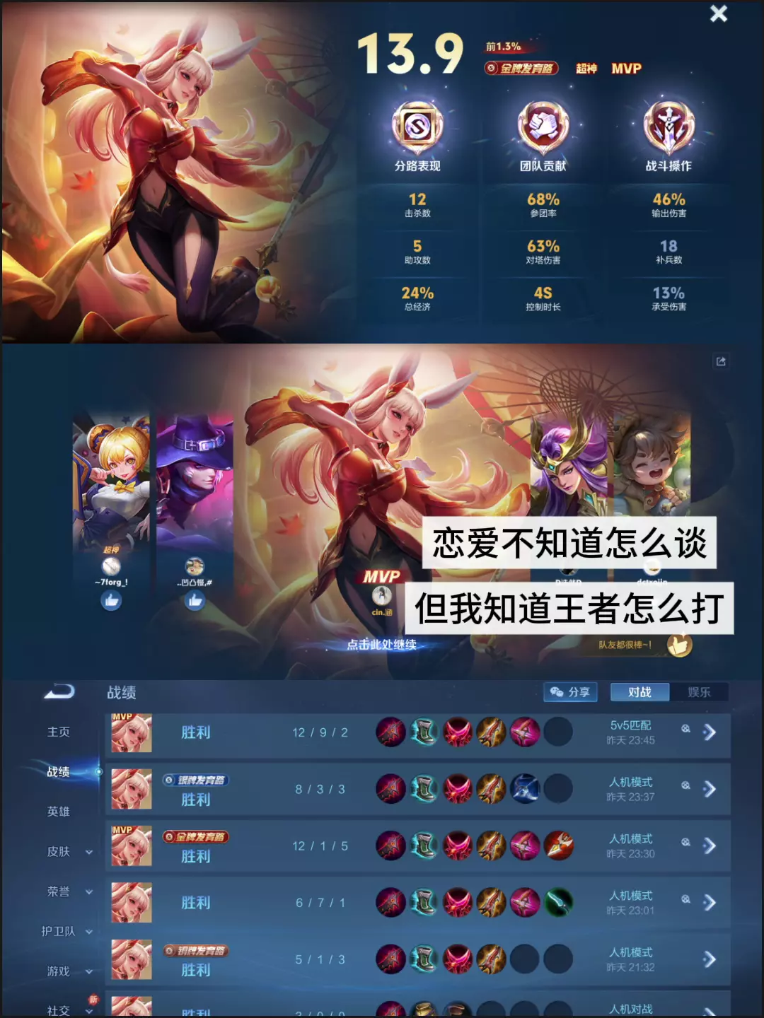 谈恋爱不知道怎么谈但我知道王者怎么打