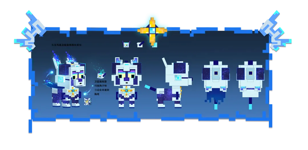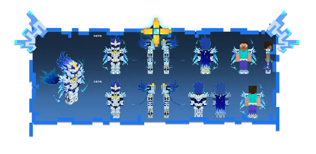 作为在第一线的年轻战士和英雄,本体为白色现代装甲造型,身穿超级英雄式的装束,不轻易摘下头盔以真面目示人,披风由彗星组成,而盔甲间隙见可见其星体皮肤。