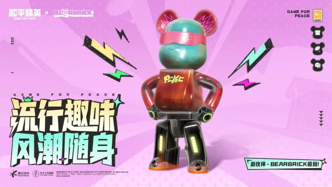 BEARBRICK带着它独特的潮流魅力和无畏精神,与你并肩作战,TA的加入,让每一场战斗都像是一场潮流与竞技融合的狂欢派对~
