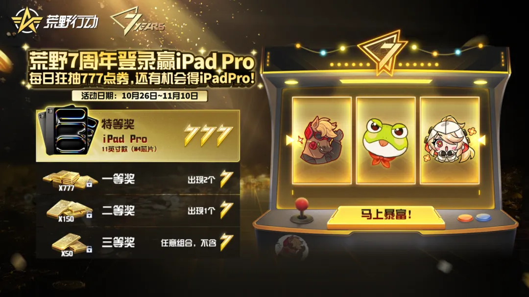 10月26日-11月10日,777绑点连抽15天,最高可获得11655绑定点券!