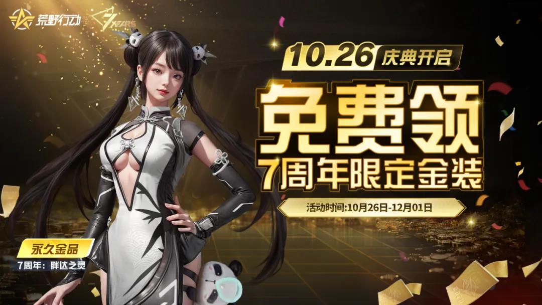 完成周末战斗任务,7周年限定金装【胖达之灵】即可免费领取!你就是下一个甜甜的双马尾熊猫萌妹!