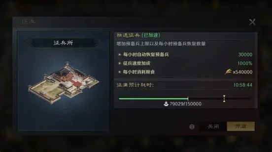 玩家在自己营帐中,也可以在普通征兵中,消耗粮食转化成预备兵。