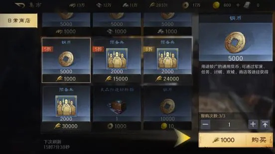 日常商店有时会出现铜币兑换粮食,帮助玩家发展。