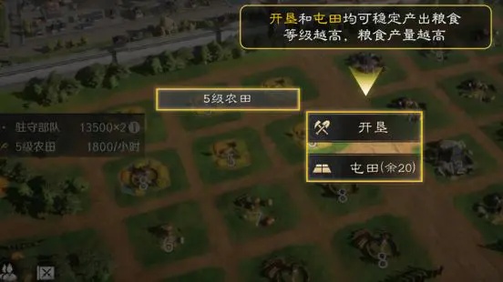 玩家可通过开垦土地获取粮食,开垦的土地属于自身主城,每日可稳定产出粮食。开垦等级越高,粮食产量也随之增加。不需要担心土地被抢夺风险,玩家可安心经营自己的主城,确保了粮食的稳定供应。