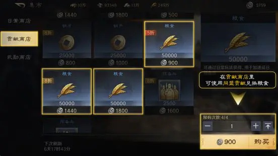贡献商店需要同盟贡献兑换粮食。