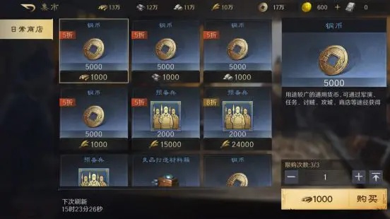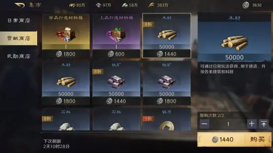 在霸业阶段“兵临城下”未开启时,在日常商店中,有部分铜币可以直接使用木材进行兑换。