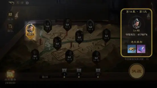 军演可以也是获取木材的主要渠道。每章节第1关与第6关,均有两次机会收获丰厚的木材。随着章节难度的递增,所得木材会增加。挂机奖励无法获得木材,还需玩家参与军演,才能获取资源。