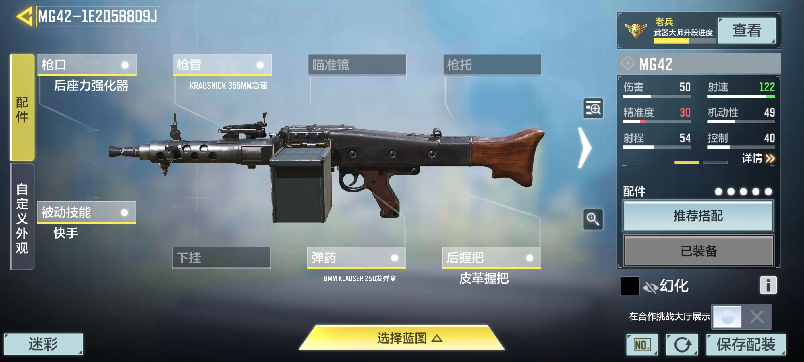 2.Mg42:反正伤害是用射速叠起来的,如果非要选机枪那就选他,比rpd好用的多,rpd虽然无限弹药但冷却时间比其他机枪换弹时间还要长而且射速慢伤害低所以不推荐,具体配件